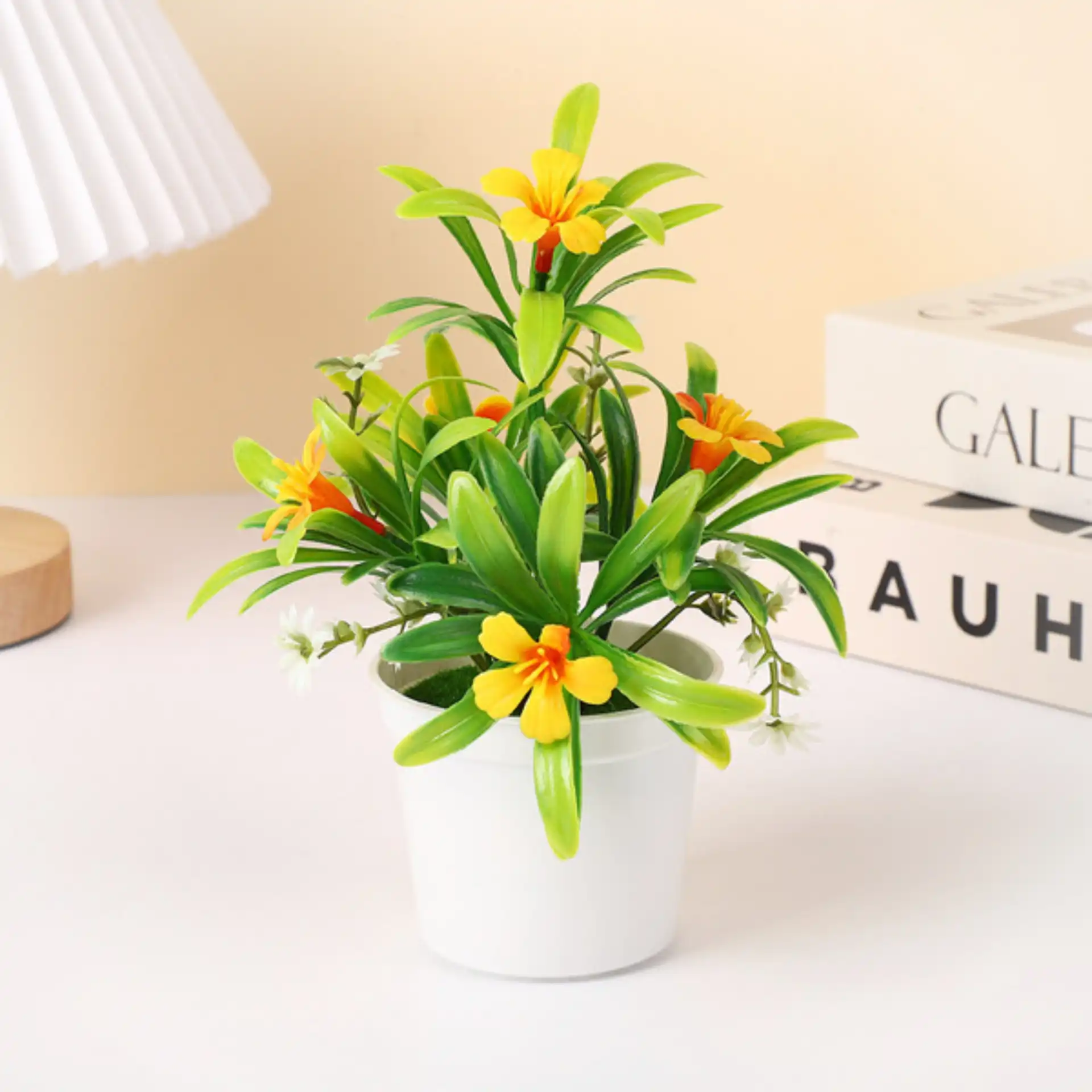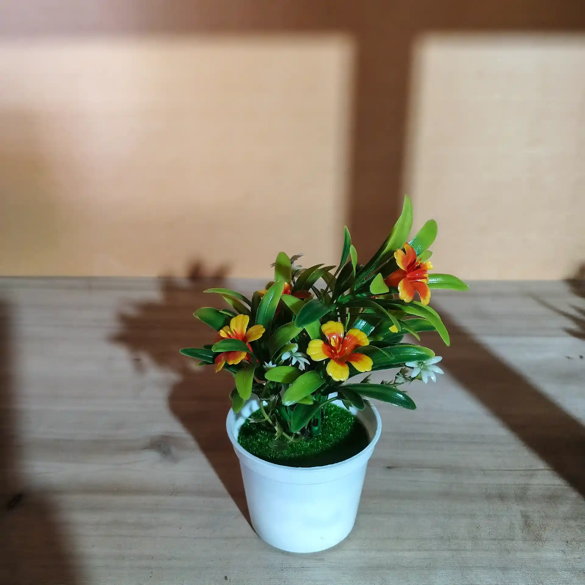 Add a cheerful and lively vibe with the Yellow Bloomy Mini Artificial Flower Pot. Its bright yellow blooms instantly energize any space, making it perfect for home, office, or shop décor. Durable and maintenance-free, it stays vibrant all year round.